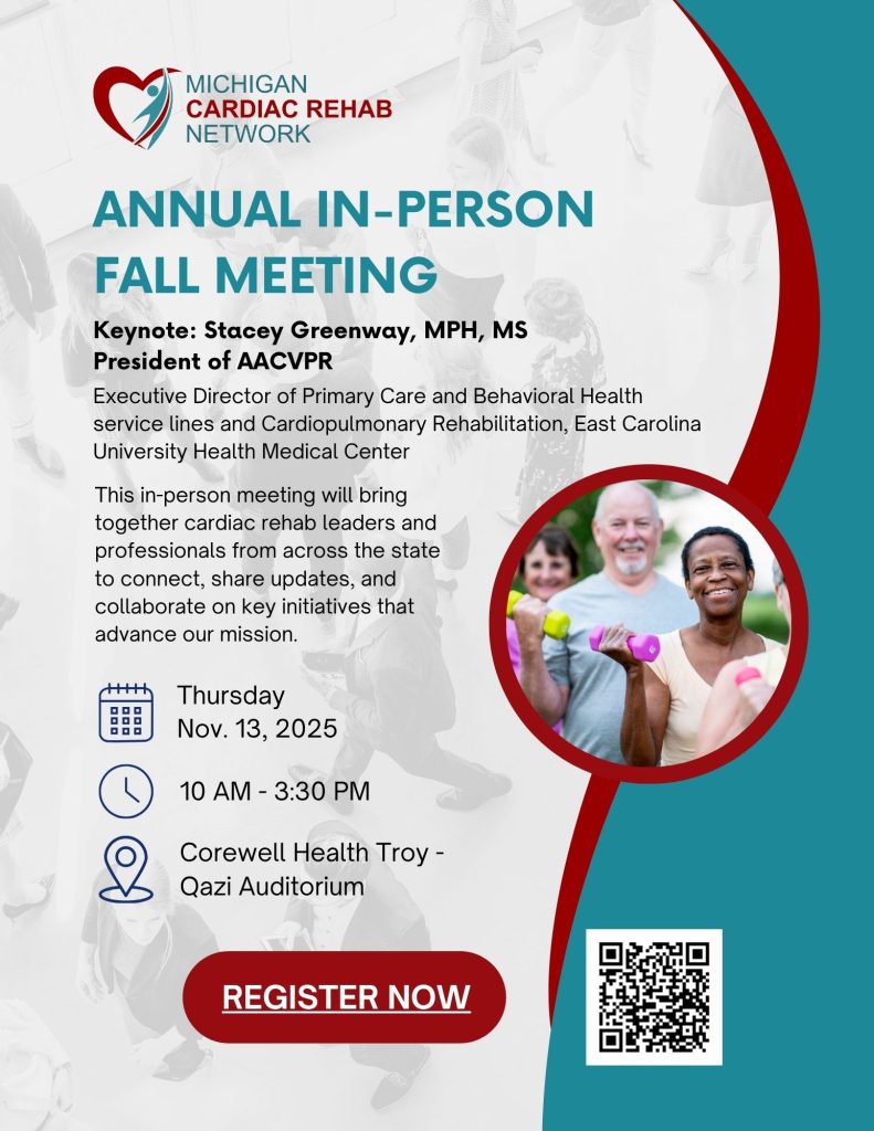 加入密歇根心脏康复网络,参加由站点大使 Corewell Health Troy 主办的 2025 年秋季面对面会议。